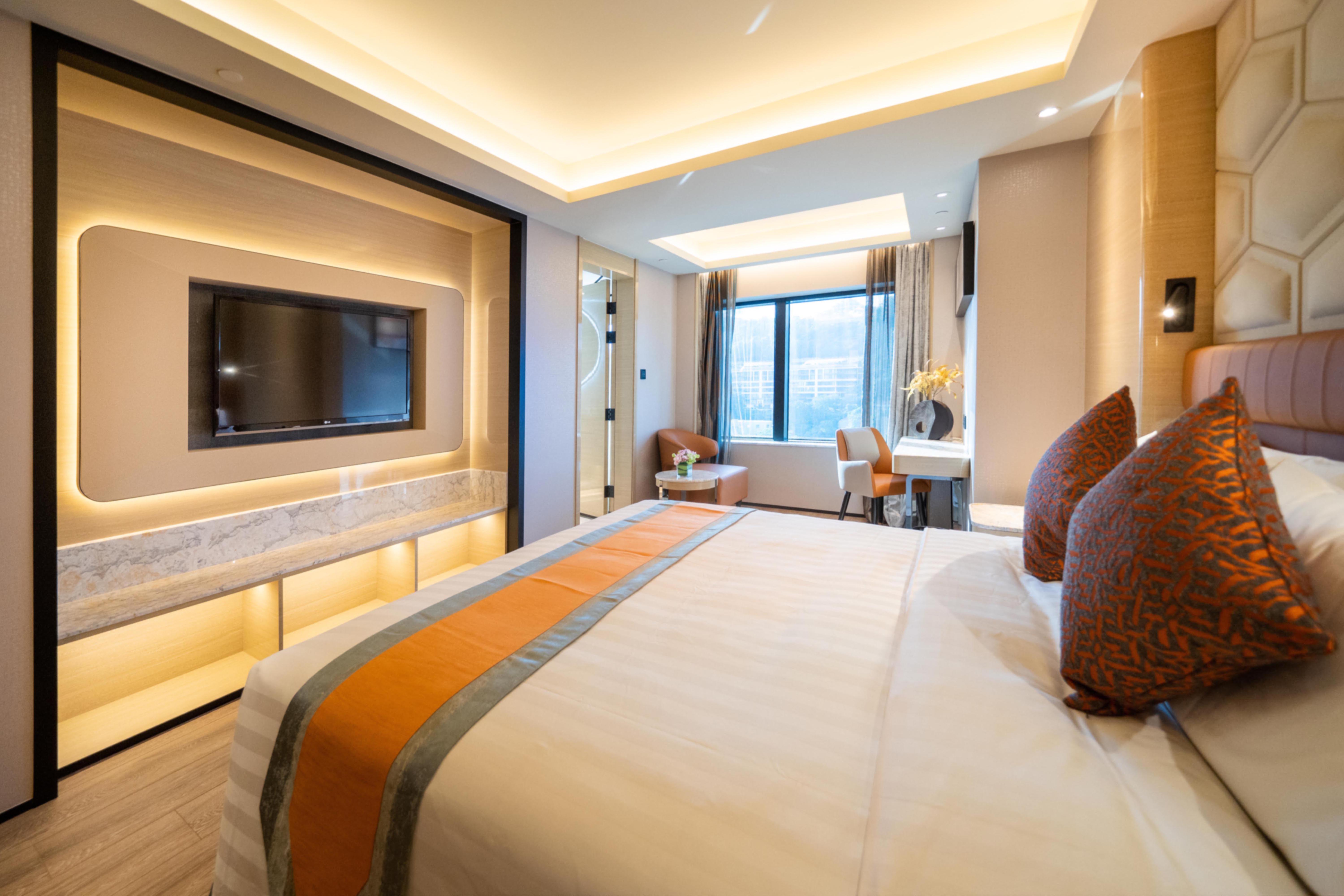 房間寬敞舒適,設計完美利用光學元素配以暖色系柔和色調,提升房間空間感,浴室以雲石設計作點綴,盡顯高貴獨特氣派之餘更帶有時尚感。